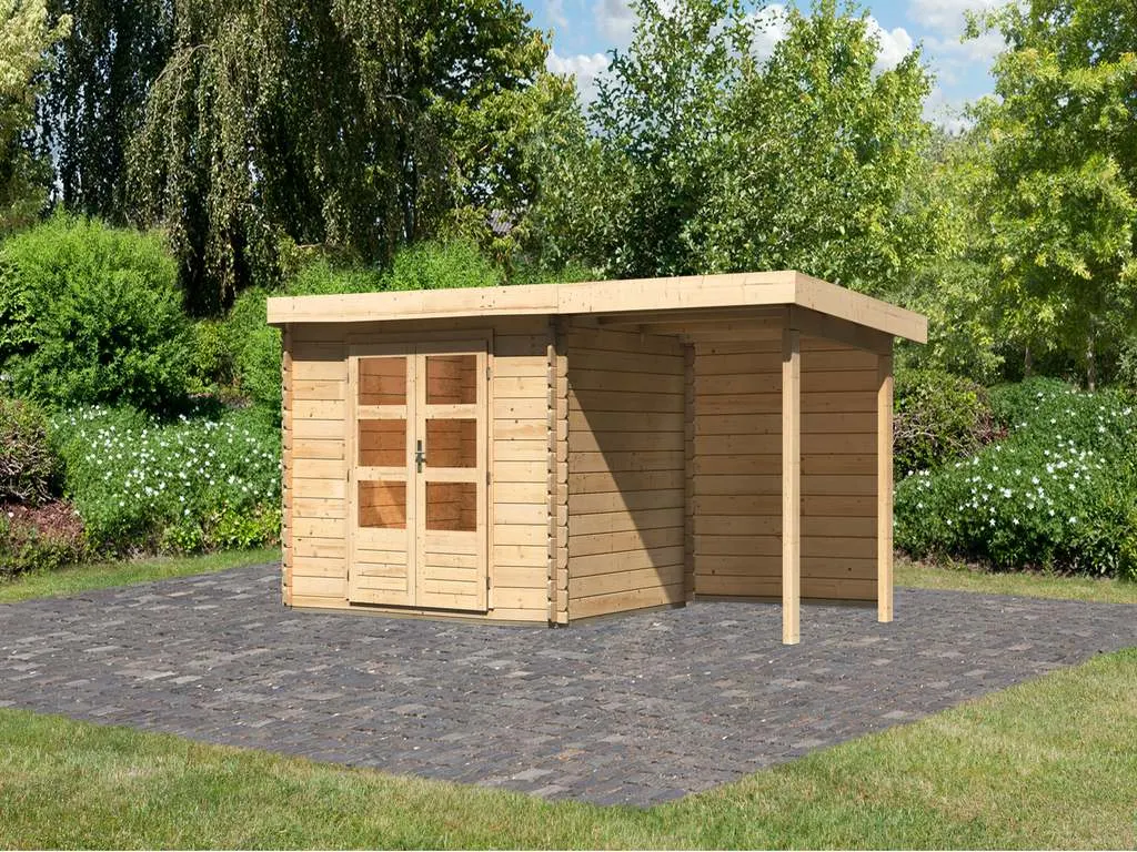 KARIBU Gartenhaus Bastrup Blockbohlenbauweise Pultdach
