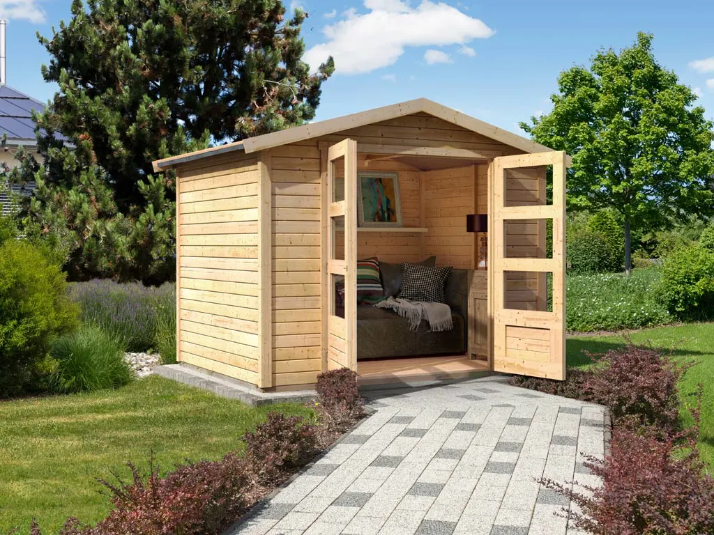 Das naturbelassene Holz sorgt für ein natürliches und zeitloses Aussehen. Außerdem ermöglicht Dir das unbehandelte Holz, das Äußere des Gartenhauses ganz nach Deinen eigenen Wünschen zu gestalten.