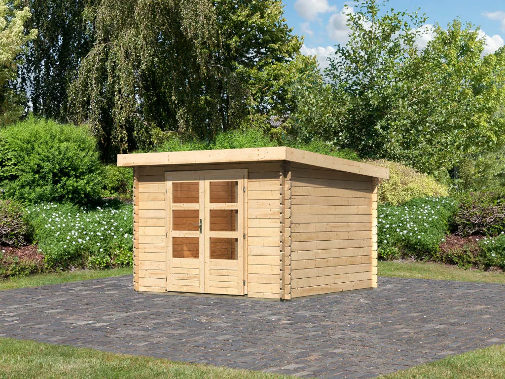 Das Gartenhaus wird ohne Fußboden geliefert. Einen passenden Fußboden (achte auf die Serienbezeichnung) findest du in unserem Zubehörsortiment.