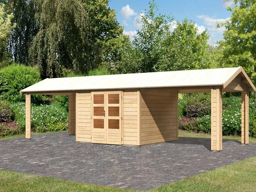 Das Gartenhaus wird aus 28 mm starken Wandbrettern aus nordischer Fichte im Steck-/Schraubsystem gefertigt und gewährleistet somit einen einfachen Aufbau und eine stabile Konstruktion. Das Satteldach besteht aus Massivholzdach.