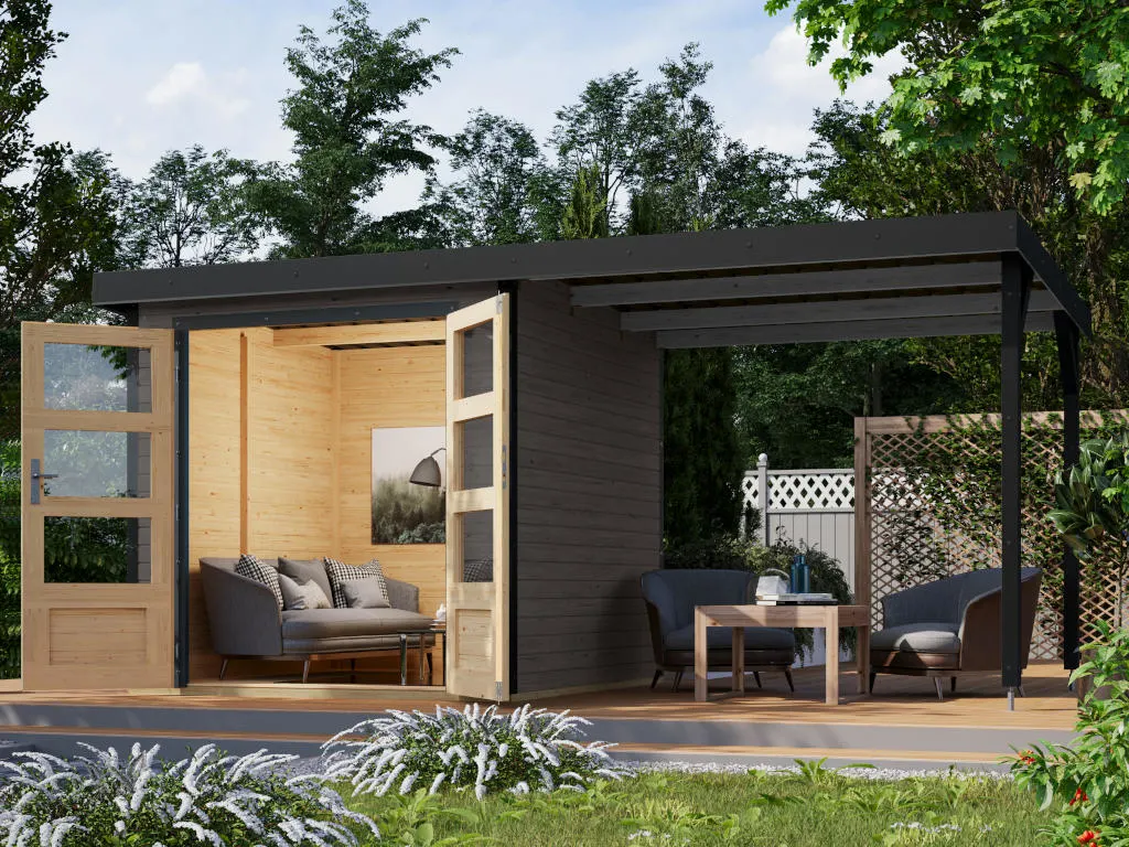 KARIBU Hybrid-Gartenhaus Jupiter B Set terragrau/anthrazit
