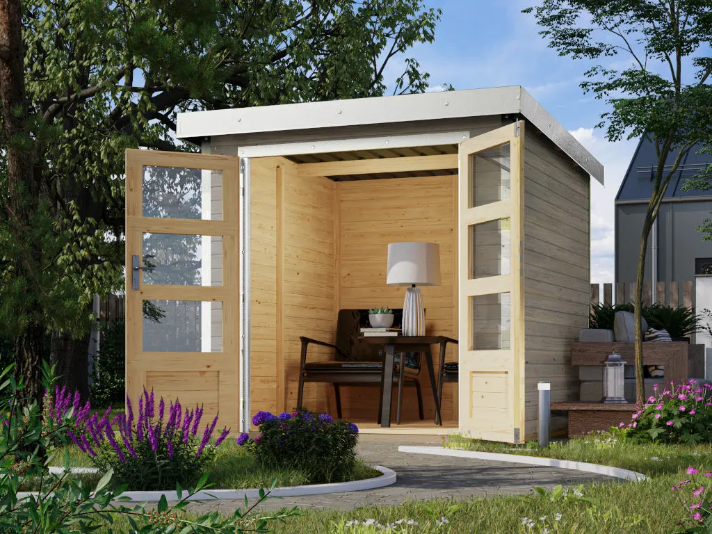KARIBU Hybrid-Gartenhaus Jupiter D wassergrau/weiß