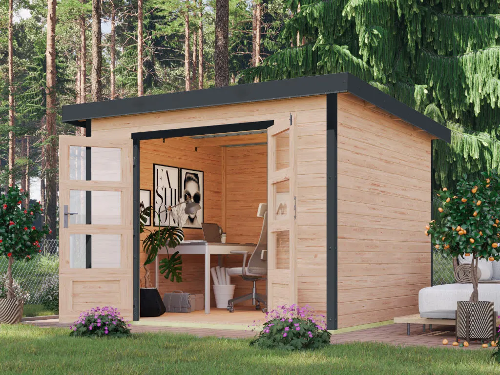 KARIBU Hybrid-Gartenhaus Pluto A naturbelassen/anthrazit