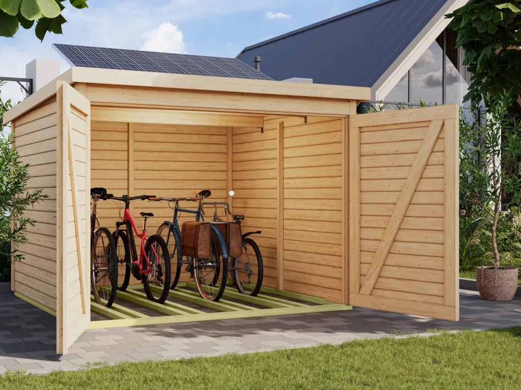 | Bauweise Gartenhäuser aus Holz sind in drei verschiedenen Bauweisen erhältlich: Blockbohlenbauweise, Systembauweise, Elementbauweise. Mehr Infos | Steck-/Schraubsystem |