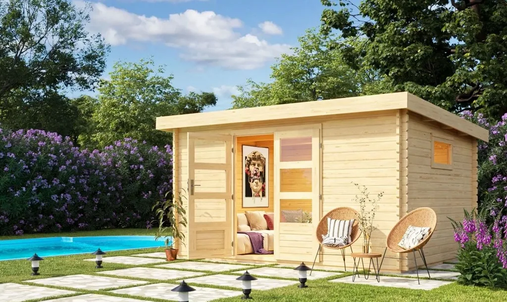 KARIBU Gartenhaus Trittau Blockbohlenbauweise Pultdach