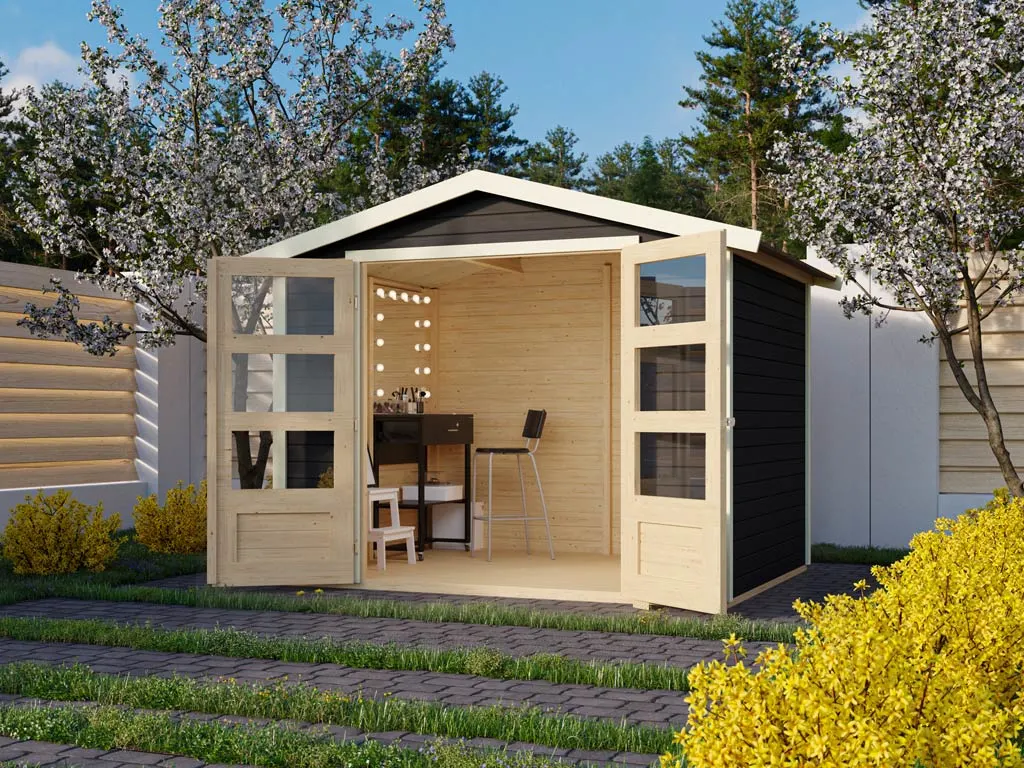 Die Grundfläche des Gartenhauses beträgt 4,58 m² mit einem Sockelmaß von 242 x 182 cm (B x T). Eine optimale Raumnutzung wird dank einer Firsthöhe von 209 cm gewährt.