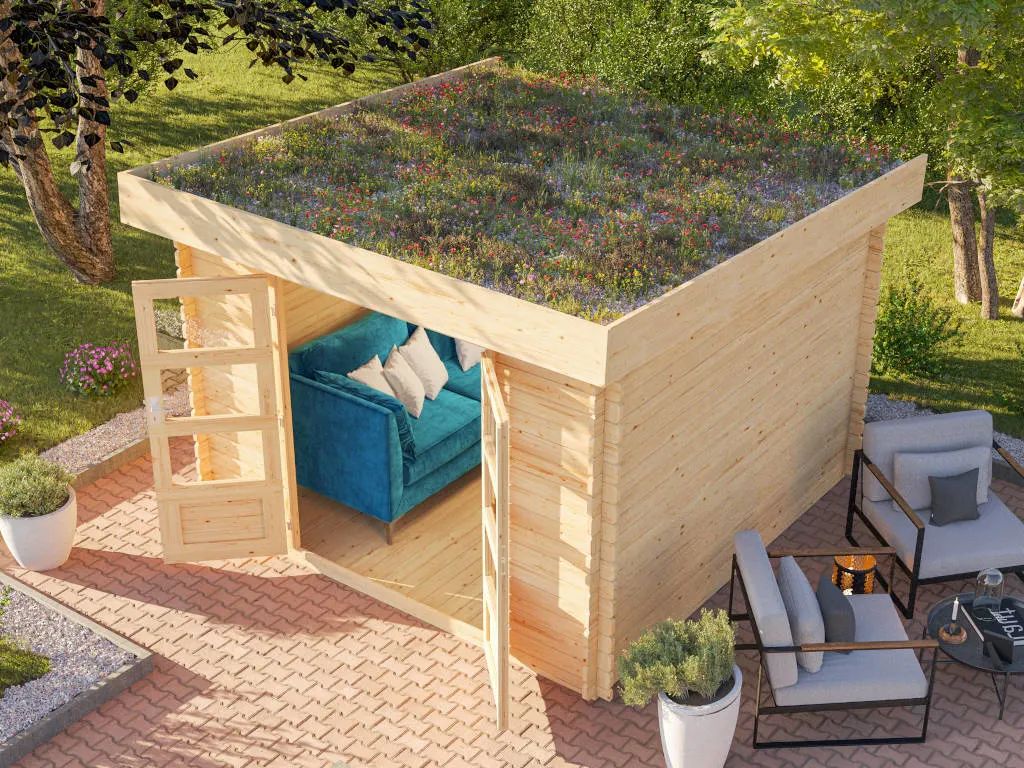 Ein modernes Pultdach verleiht deinem Gartenhaus eine stilvolle, elegante Optik. Durch nur eine geneigte Dachfläche ist die Nutzungsfläche im Inneren des Gartenhauses deutlich weniger eingeschränkt und der Verlust an Nutzraum gering. Zudem lässt die Neigungsseite des Pultdaches das Regenwasser gut abfließen und es ist die Montage von nur einer Regenrinne nötig.