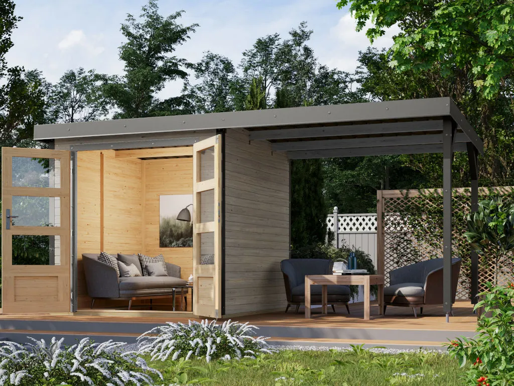 KARIBU Gartenhaus Jupiter 2 19 mm naturbelassen / graualuminium