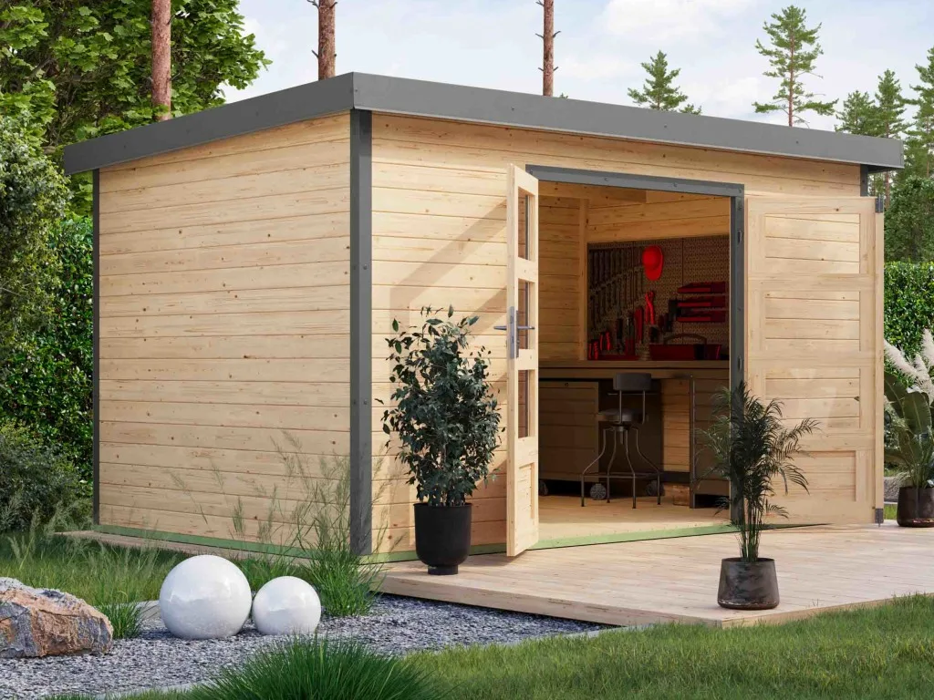 Im Vergleich zu herkömmlichen Holzgartenhäusern sind Hybridhäuser von Karibu erheblich wartungsärmer. Die Stahlecken schützen besonders gut vor Witterung und die Häuser überzeugen durch ihre moderne Optik.