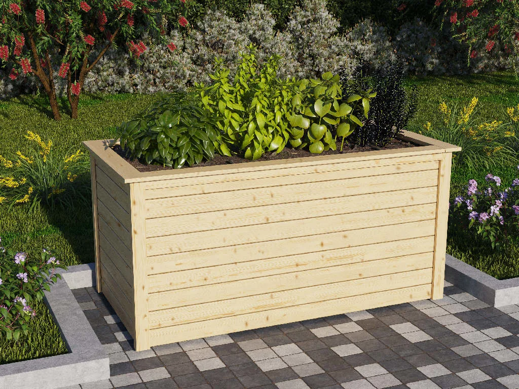 Das Hochbeet besteht aus robustem Fichtenholz in Natur. Fichte ist besonders langlebig und stabil – das ideale Holz für den Außenbereich. Durch die natürliche Farbe fügt sich das Beet harmonisch in das Erscheinungsbild deines Gartens ein.