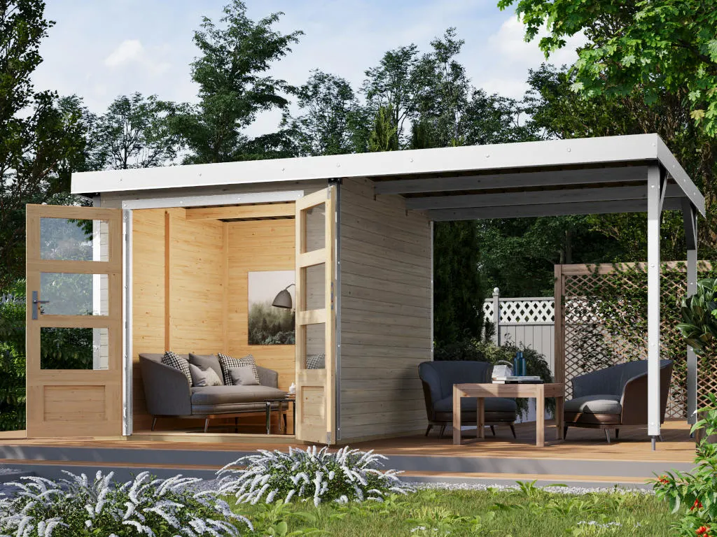 KARIBU Hybrid-Gartenhaus Jupiter D Set wassergrau/weiß