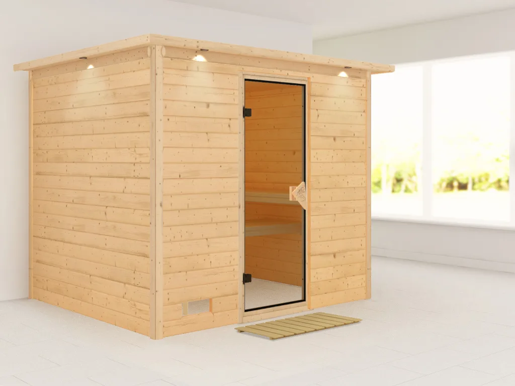 Bitte beachten: Im Lieferumfang dieser Sauna ist KEIN Saunaofen enthalten. Von dieser Sauna sind jedoch Varianten inkl. Saunaofen erhältlich (siehe oberhalb des Warenkorb-Buttons). Zusätzlich findest Du im Onlineshop eine große Auswahl an verschiedenen Öfen.