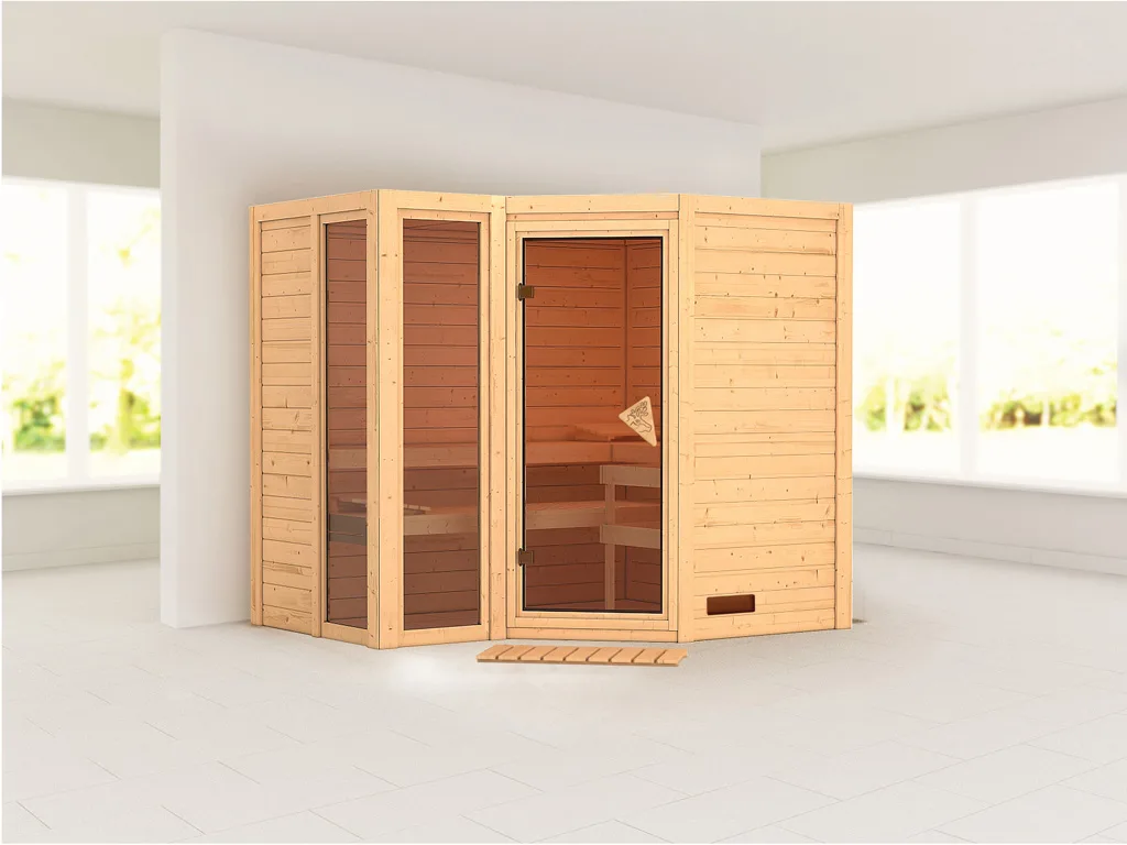 Bitte beachten: Im Lieferumfang dieser Sauna ist KEIN Saunaofen enthalten. Von dieser Sauna sind jedoch Varianten inkl. Saunaofen erhältlich (siehe oberhalb des Warenkorb-Buttons). Zusätzlich findest Du im Onlineshop eine große Auswahl an verschiedenen Öfen.