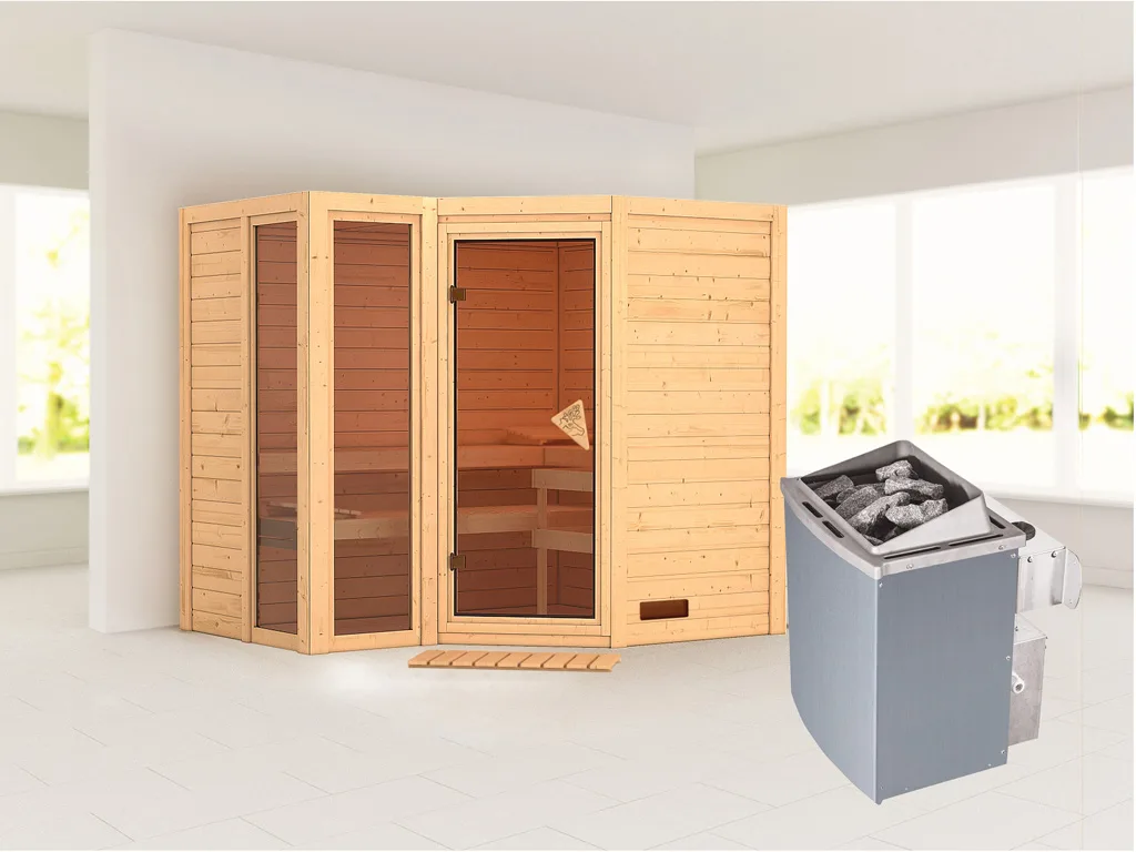 Sauna Massivholzsauna Amara inkl. 9 kW Saunaofen integr. Steuerung