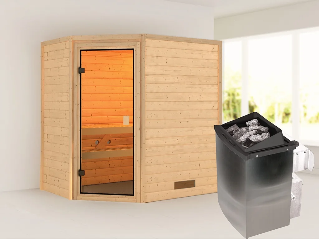 Sauna Massivholzsauna Jella, inkl. 9 kW Ofen mit integrierter Steuerung