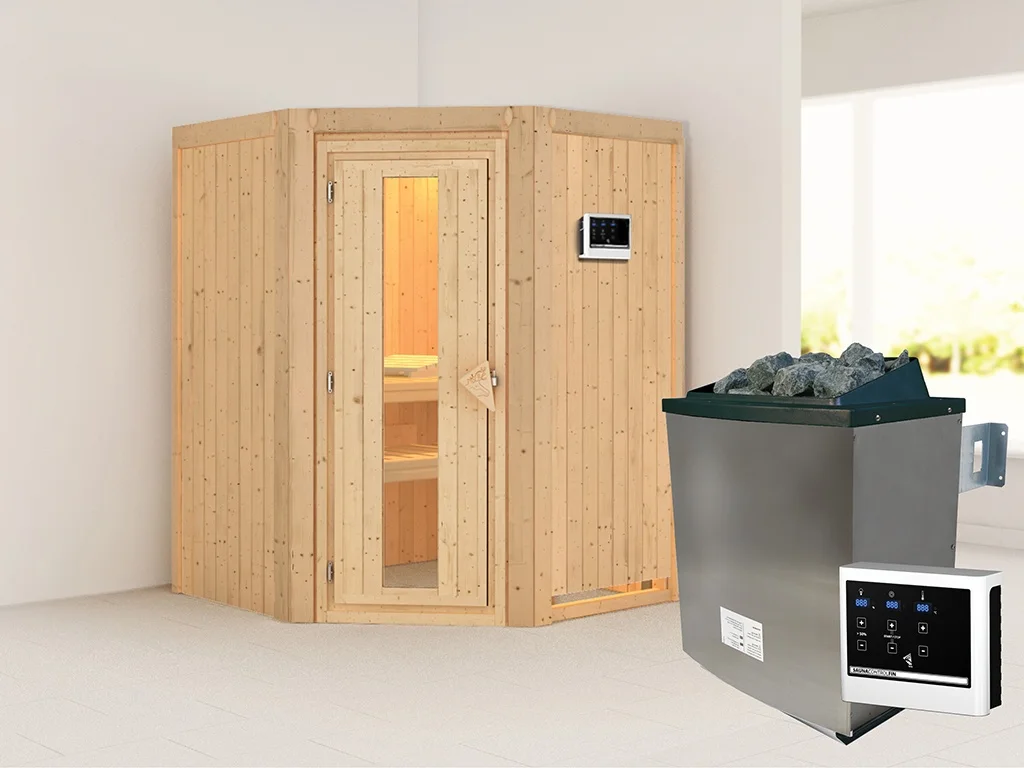 Sauna Systemsauna Larin, inkl. 9 kW Ofen mit externer Steuerung