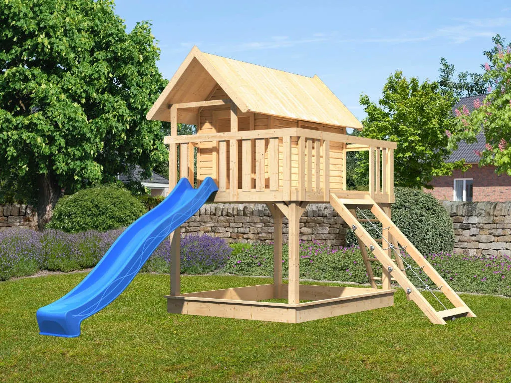 • Stelzenhaus Fidel, inkl. Wellenrutsche 3m blau, Netzrampe