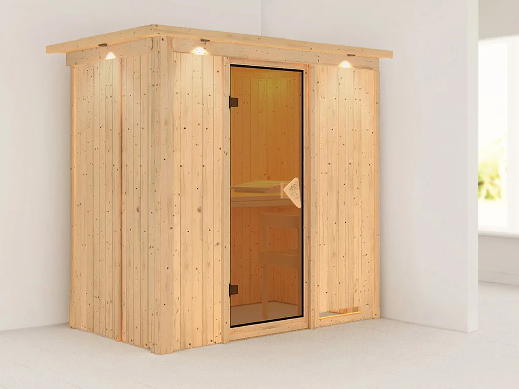 Dieses Saunamodell – eine System- bzw. Elementsauna – zeichnet sich durch seine besondere Sandwich-Bauweise aus, d.h. die Wandelemente bestehen aus einzelnen Schichten. Die bereits vorgefertigten Wandelemente ermöglichen einen schnellen Aufbau innerhalb weniger Stunden.