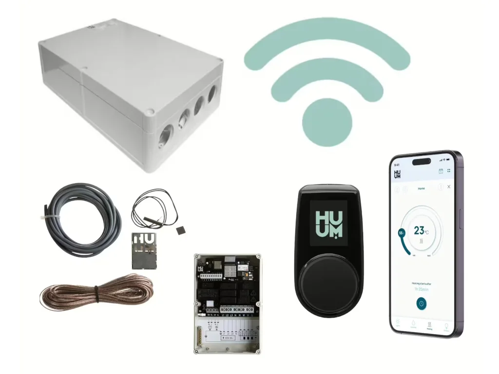 Die elektronische Saunaofensteuerung ist eine moderne Saunasteuerung mit integriertem WLAN-Modul, die sich sowohl für finnische als auch für Bio-Saunaöfen von verschiedenen Herstellern eignet. Das System lässt sich wahlweise über das stilvoll gestaltete schwarze Steuergerät oder die HUUM-App bedienen. Damit ist eine Fernsteuerung der Sauna über Smartphone, Tablet oder PC möglich – ideal für den privaten Bereich mit WLAN-Abdeckung. Die Installation ist flexibel: Die Steuerkonsole kann außerhalb oder im unteren Bereich der Sauna montiert werden, das Bedienteil je nach Saunatyp in der Kabine oder im Vorraum.
