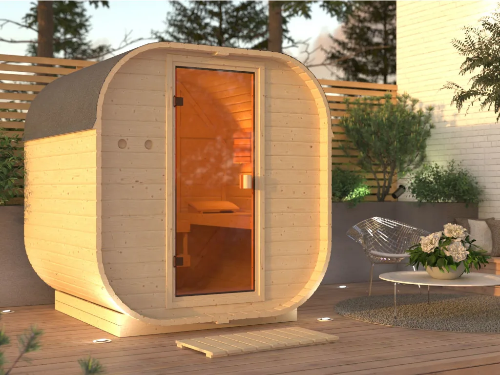 Fasssaunen ziehen mit ihrer außergewöhnlichen Optik nicht nur alle Blicke auf sich, sondern bieten auch hervorragende technische Eigenschaften. Die runde Form ermöglicht eine optimale Luft- und Wärmezirkulation sowie ein besonders schnelles, sparsames Erhitzen ohne unangenehmen Hitzestau in den Ecken und unter der Decke. Dank ihrer kompakten Form und geringen Grundfläche sind Fasssaunen besonders gut für kleine Gärten geeignet.