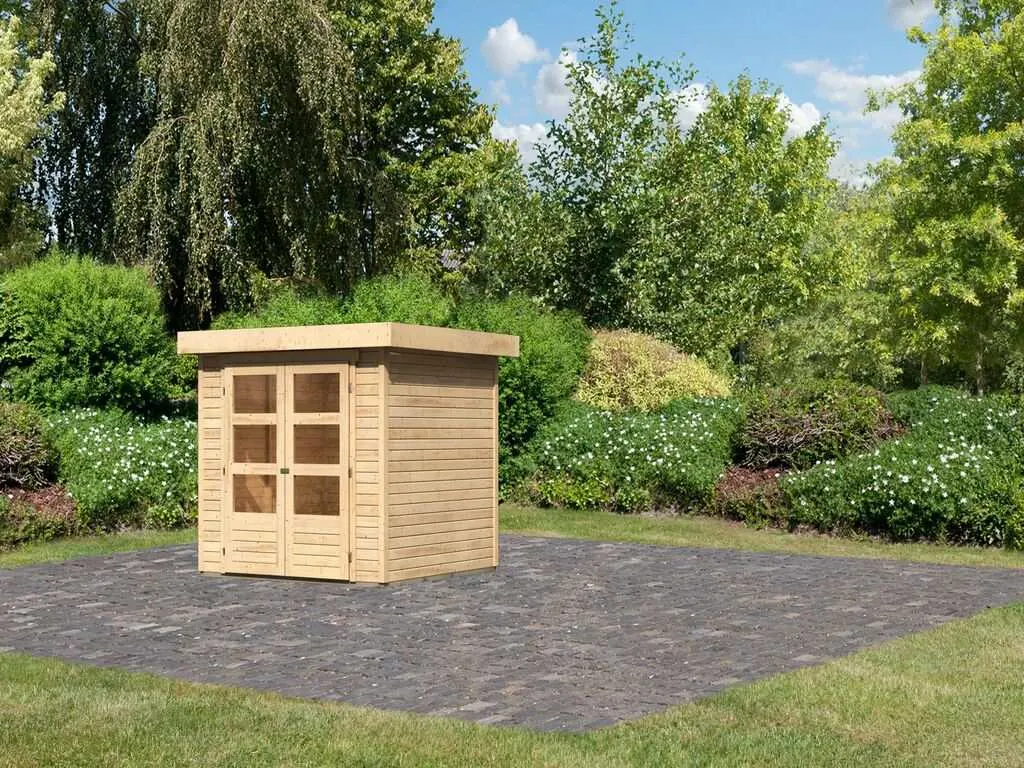 Die Grundfläche des Gartenhauses beträgt 4,45 m² mit einem Sockelmaß von 209 x 213 cm (B x T). Eine optimale Raumnutzung wird dank einer Firsthöhe von 211 cm gewährt.