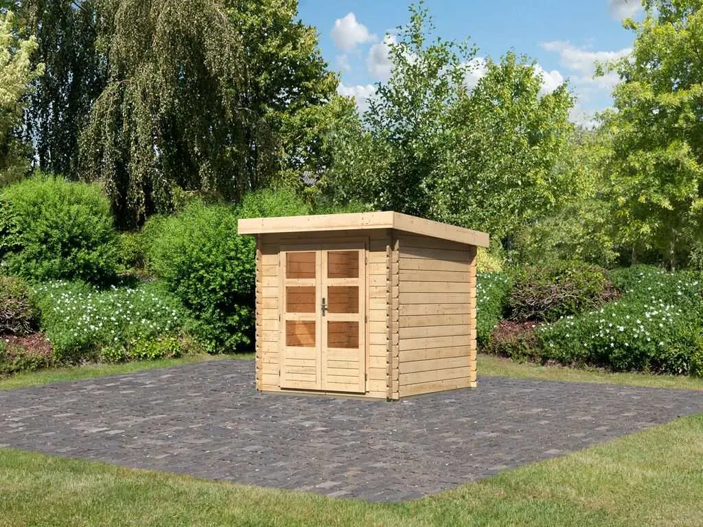 Als der Klassiker unter den Gartenhäusern verfügt ein Blockbohlenhaus über eine sehr robuste Bauweise, gepaart mit einer besonderen, natürlichen Ästhetik. Dabei orientiert sich die Bohlenbauweise an der traditionellen Blockhütte. Die Wände setzen sich aus vorgefertigten Holzbohlen zusammen, die dank einer Nut- und Feder-Verbindung ohne größere Anstrengungen aufeinander gesteckt werden können. Damit ist ein einfacher und schneller Auf- und Abbau garantiert. An der Kopfseite des Gartenhauses sorgt die charakteristische Verkämmung (spezielle Einkerbungen im Holz) nicht nur für eine schöne Optik, sondern hält das ganze Konstrukt auch zusammen und macht es absolut wind- und wetterfest.