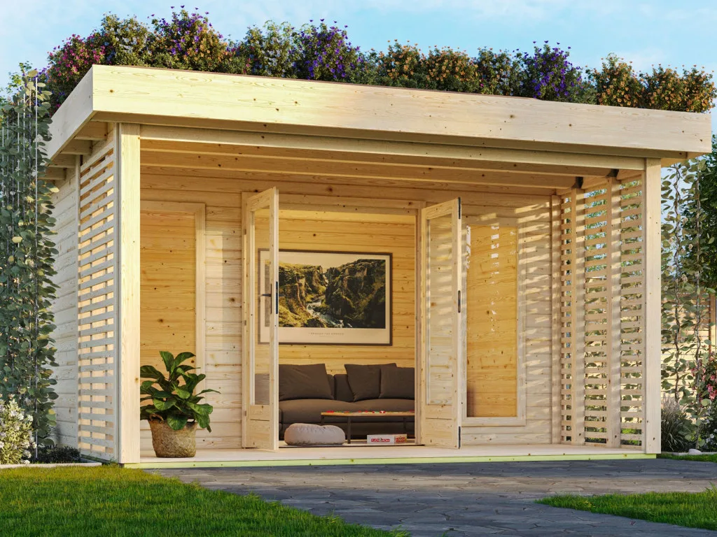 Gartenhaus Lily 38 mm naturbelassen mit Dachbegrünung