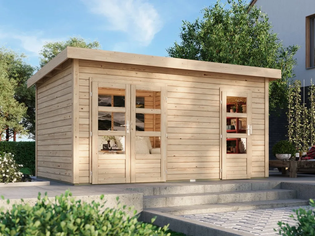 Das naturbelassene Holz sorgt für ein natürliches und zeitloses Aussehen. Außerdem ermöglicht Dir das unbehandelte Holz, das Äußere des Gartenhauses ganz nach Deinen eigenen Wünschen zu gestalten.