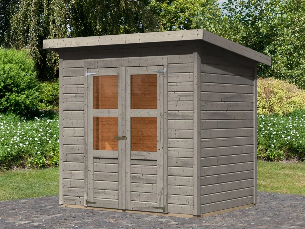 Ein modernes Pultdach verleiht deinem Gartenhaus eine stilvolle, elegante Optik. Durch nur eine geneigte Dachfläche ist die Nutzungsfläche im Inneren des Gartenhauses deutlich weniger eingeschränkt und der Verlust an Nutzraum gering. Zudem lässt die Neigungsseite des Pultdaches das Regenwasser gut abfließen und es ist die Montage von nur einer Regenrinne nötig.