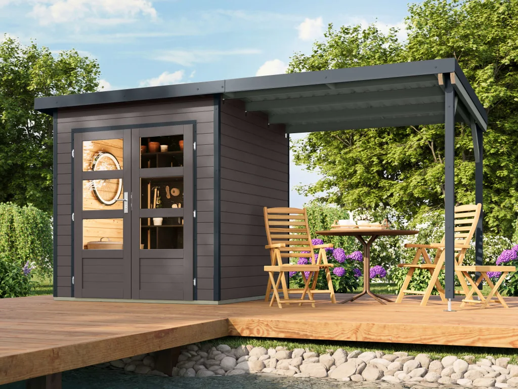 Gartenhaus Plutus 1 28 mm SET terragrau / anthrazit mit Anbau