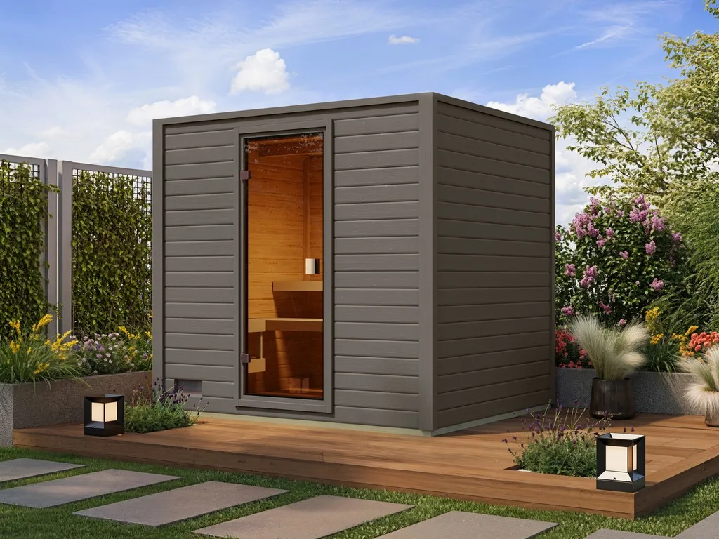 Erlebe pure Entspannung mit deiner Gartensauna: Hochwertige Materialien und attraktives Design sorgen für ein einzigartiges Saunaerlebnis direkt in deinem Garten. Hier können 2-4 Personen gleichzeitig saunieren.