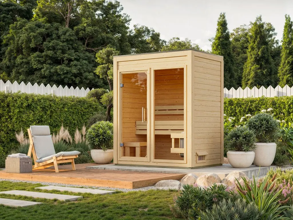 Erlebe pure Entspannung mit deiner Gartensauna: Hochwertige Materialien und attraktives Design sorgen für ein einzigartiges Saunaerlebnis direkt in deinem Garten. Hier können 1-3 Personen gleichzeitig saunieren.