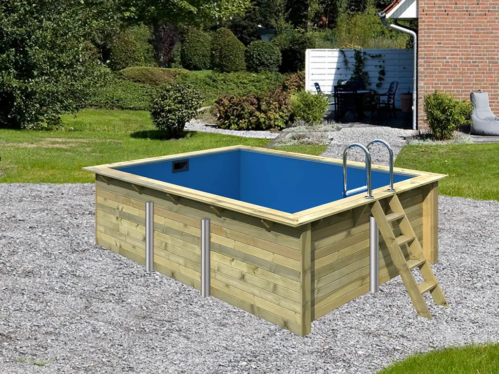Mit dem Holzpool Modell 2 Rechteck kann Deine Urlaubsoase in kürzester Zeit nun perfektioniert werden. Der Pool besteht aus hochwertigem Massivholz und kommt in entsprechender Naturoptik. Dadurch kann er perfekt in Deine bestehende Gartenlandschaft integriert werden und lässt Dir die größtmögliche Freiheit bei der restlichen Gestaltung des Gartens. Die Oberfläche des Pools ist kesseldruckimprägniert. Somit hält das Material sowohl gutem als auch schlechtem Wetter stand, was Dir viele fröhliche Sommertage garantiert und die Langlebigkeit des Pools unterstreicht.
