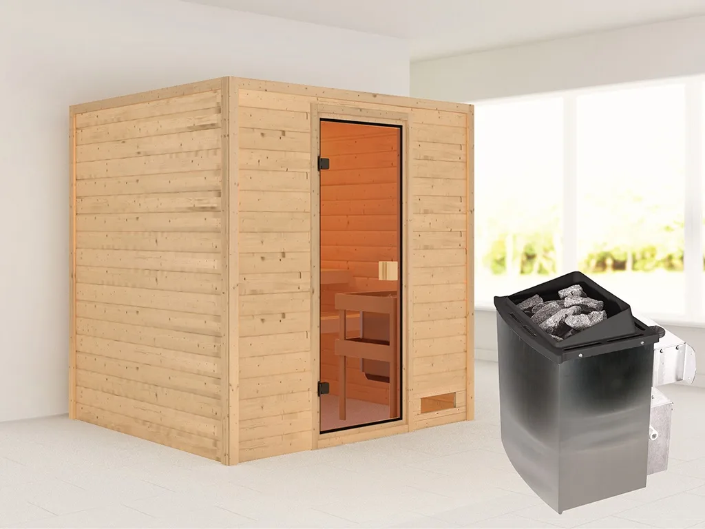 KARIBU WOODFEELING Sauna "Adelina" mit bronzierter Glastür + 9 kW Saunaofen integrierte Steuerung