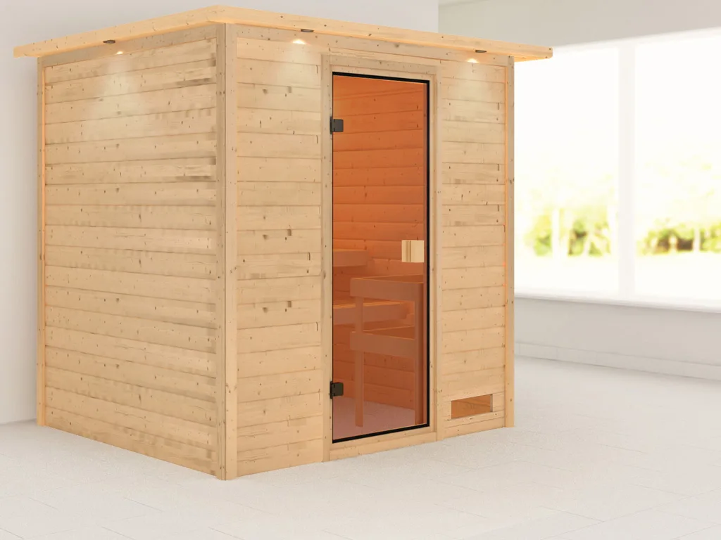 KARIBU WOODFEELING Innensauna Adelina in Massivholzbauweise für 1-2 Personen