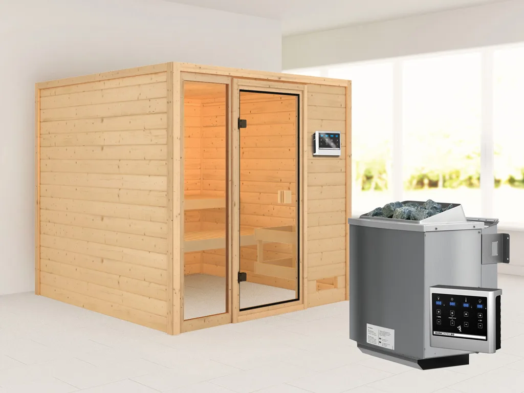 Sauna Jutta mit bronzierter Glastür + 9 kW Bio-Kombiofen ext. Strg.