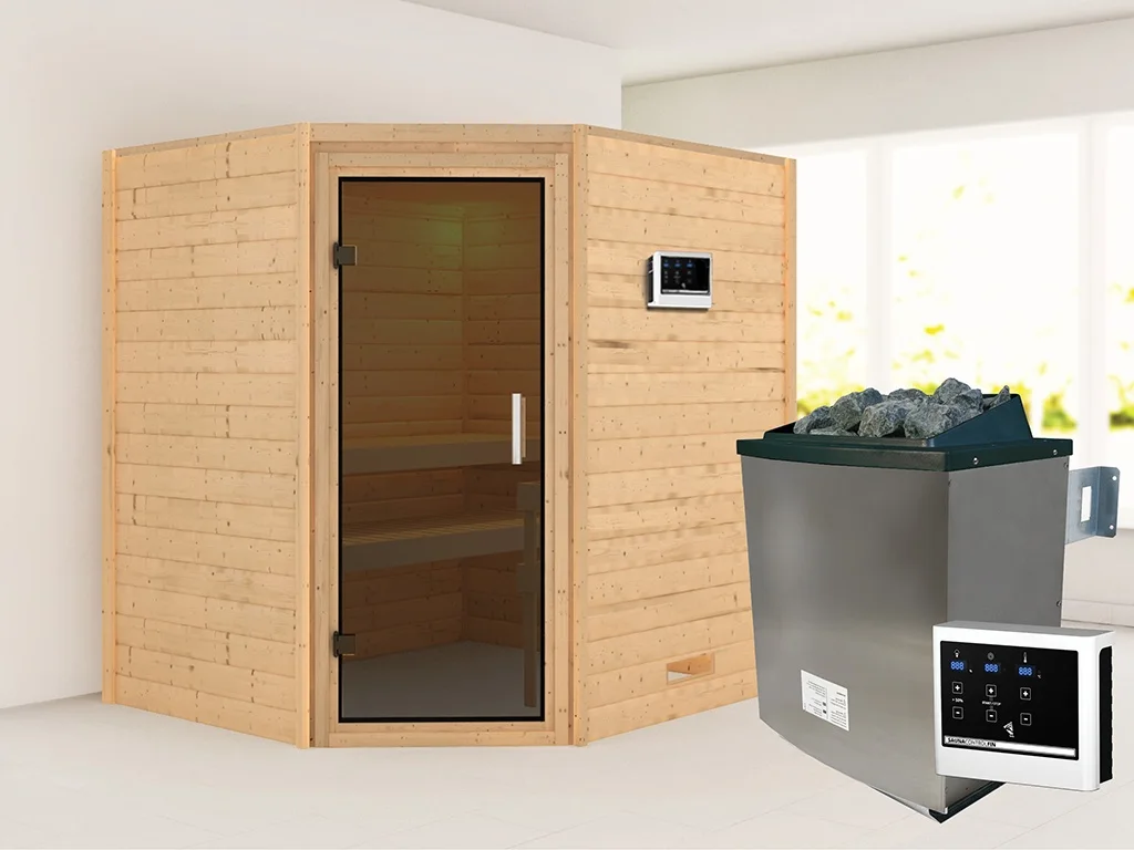 Sauna Massivholzsauna Mia, inkl. 9 kW Ofen mit externer Steuerung