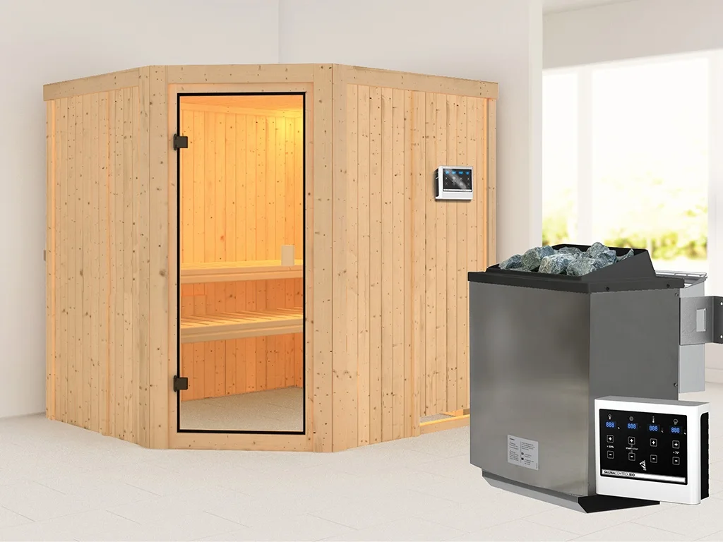 Sauna Systemsauna Bodo, inkl. 9 kW Bio-Ofen mit externer Steuerung