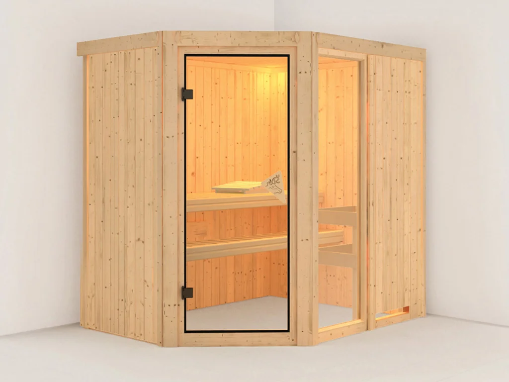 Dieses Saunamodell – eine System- bzw. Elementsauna – zeichnet sich durch seine besondere Sandwich-Bauweise aus, d.h. die Wandelemente bestehen aus einzelnen Schichten. Die bereits vorgefertigten Wandelemente ermöglichen einen schnellen Aufbau innerhalb weniger Stunden.