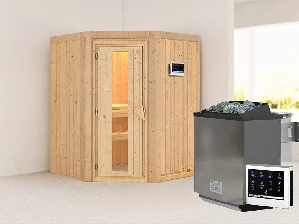 Sauna Systemsauna Larin, inkl. 9 kW Bio-Ofen mit externer Steuerung