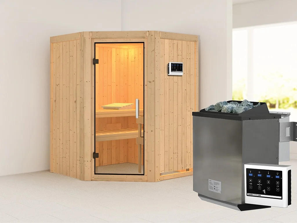 Sauna Systemsauna Larin, inkl. 9 kW Bio-Ofen mit externer Steuerung