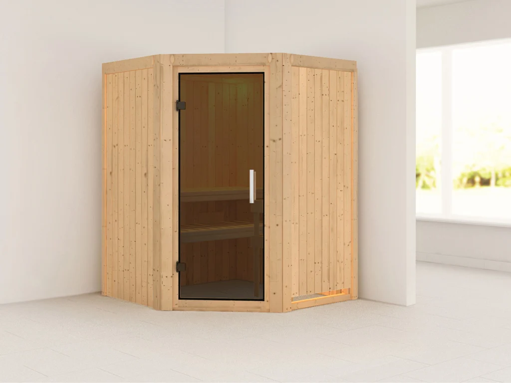 Dieses Saunamodell – eine System- bzw. Elementsauna – zeichnet sich durch seine besondere Sandwich-Bauweise aus, d.h. die Wandelemente bestehen aus einzelnen Schichten. Die bereits vorgefertigten Wandelemente ermöglichen einen schnellen Aufbau innerhalb weniger Stunden.