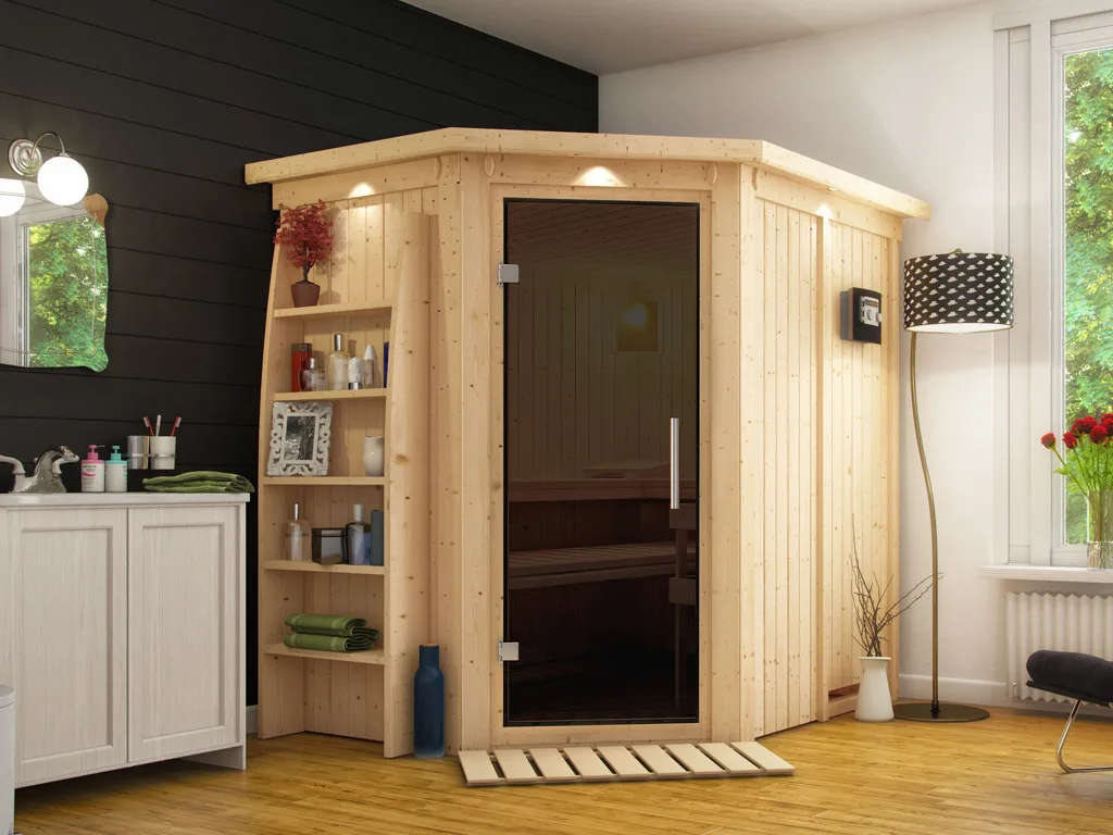 Empfehlenswerte Grundausstattung: Saunaleuchte, Sternenhimmel, für Sauna geeignete Lautsprecher, Duftöle, Ruhebank und Kopfstütze. Diese und viele andere Artikel findest Du in unserem Zubehörangebot.