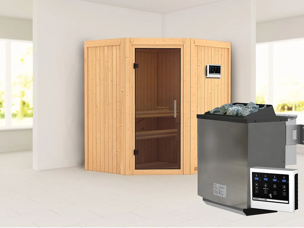 Sauna Systemsauna Taurin, inkl. 9 kW Bio-Ofen mit externer Steuerung