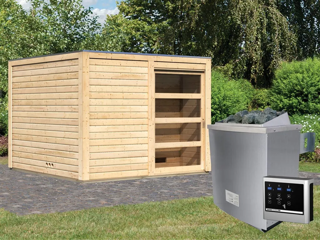 KARIBU Saunahaus Energiesparhaus "Cuben" 38 mm naturbelassen