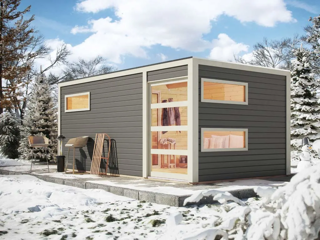 Saunahaus Hygge Grau mit Schiebetür & Vorraum, inkl. 9 kW Saunaofen mit externer Steuerung