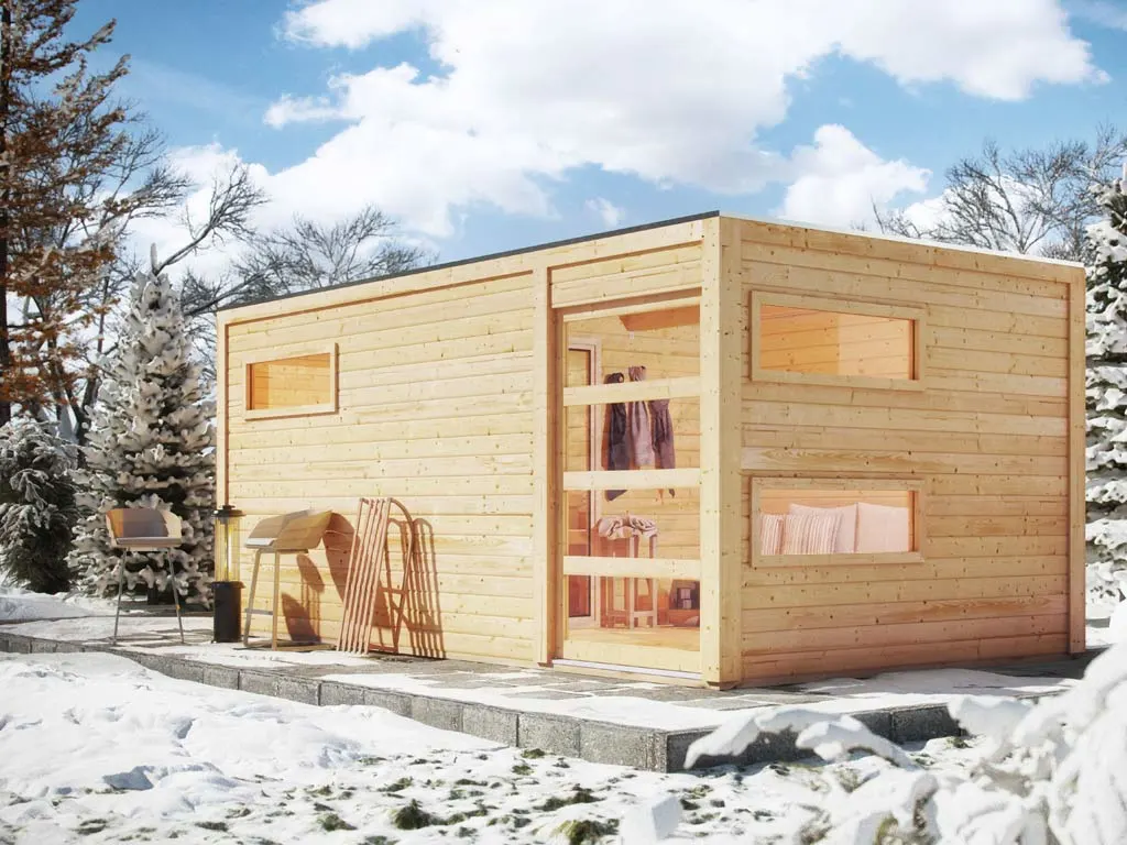 Das Saunahaus bietet genug Platz zum gemeinsamen Saunieren und anschließendem Entspannen im eigenen Garten. Genießen Sie das pure Wellness-Gefühl einfach jederzeit zu Hause im privaten Ambiente. Die Schiebetür und die Fenster lassen viel Licht ins Innere.
