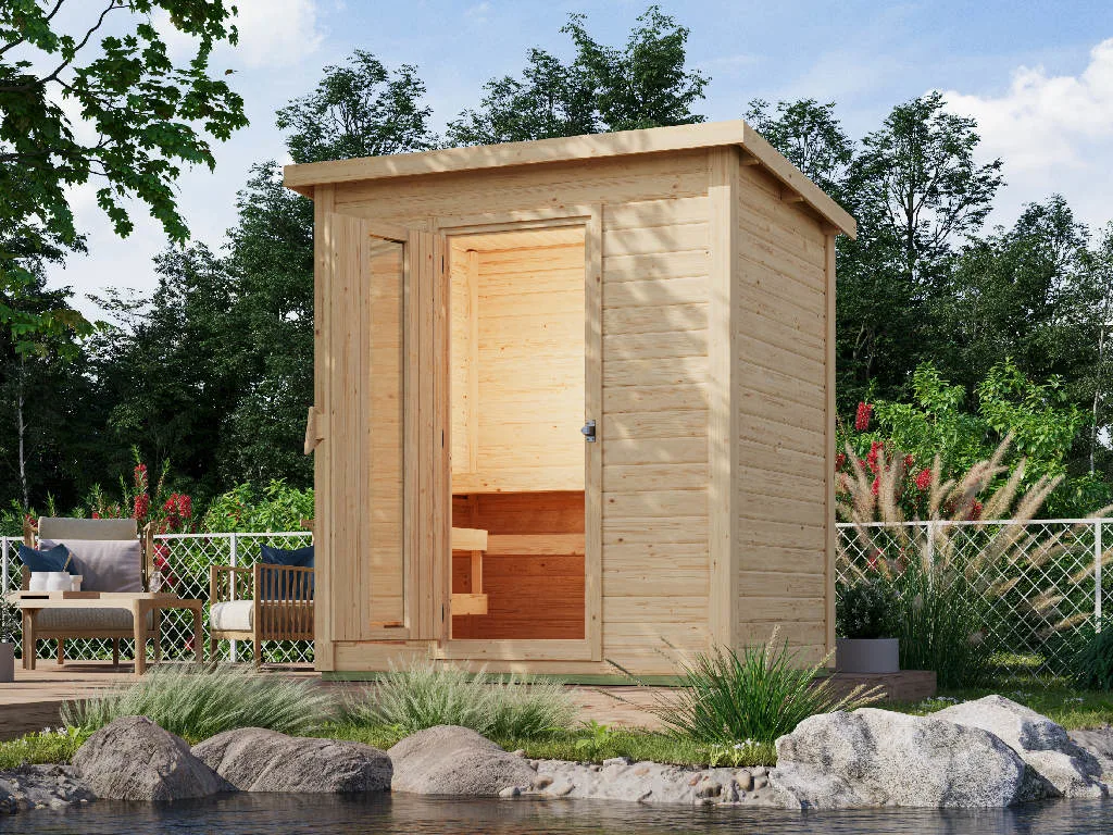 Erlebe pure Entspannung mit deiner Gartensauna: Hochwertige Materialien und attraktives Design sorgen für ein einzigartiges Saunaerlebnis direkt in deinem Garten. Der Saunaraum ist mit einer Fläche von 184 x 134 cm ausreichend dimensioniert. Hier können 1-2 Personen gleichzeitig saunieren.