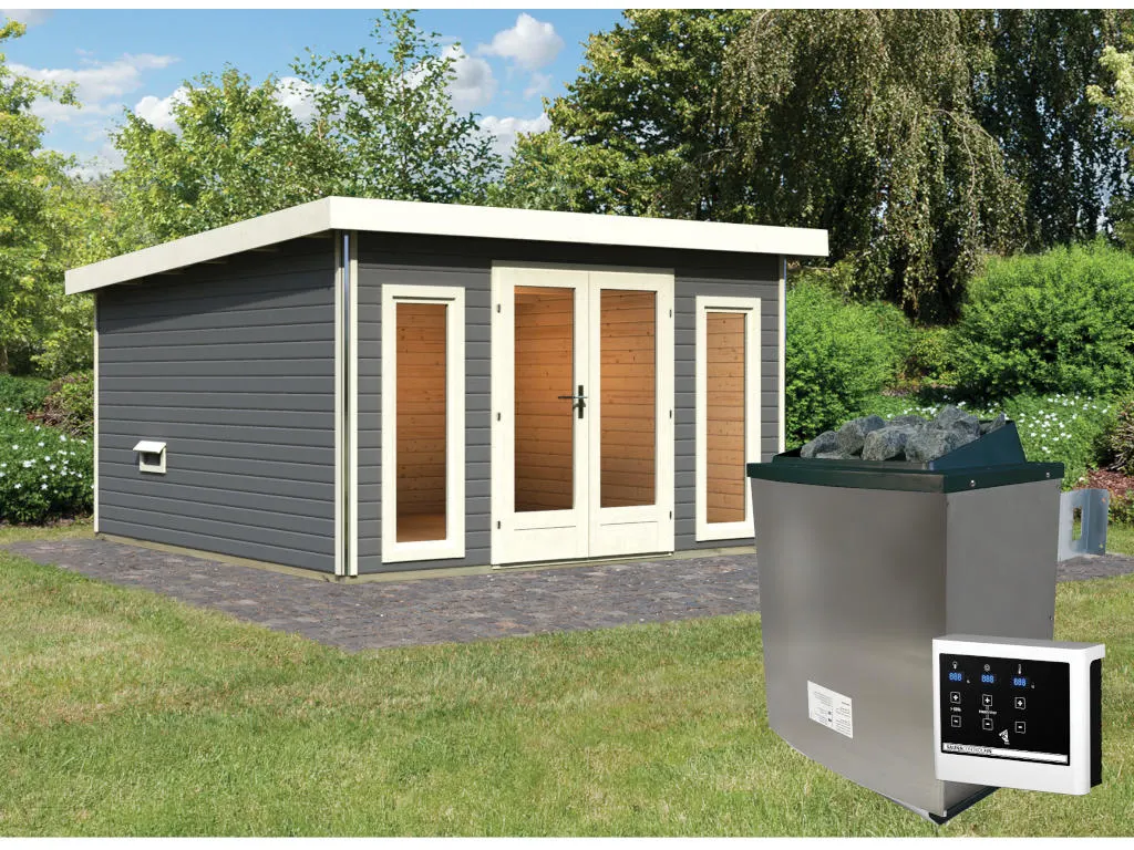 Unsere Wellnessartikel (Saunen, Saunahäuser, Saunafässer, Kotas, Infrarotkabinen, Saunaöfen etc.) dürfen nur für den privathäuslichen Gebrauch verwendet werden! Saunaöfen und dazugehörige Steuerelemente dürfen nur durch einen örtlich zugelassenen Elektroinstallateur mittels festem Anschluss an das Netz angeschlossen werden. Ausnahme: 230 Volt Plug-&-Play-Saunaöfen. Die Mindestsicherheitsabstände vom Ofen zur Wand und vom Ofen zum Ofenschutz müssen unbedingt eingehalten werden. Bei 9-kW-Öfen muss die Höhe des Ofenschutzes angepasst werden. Bitte beachte zu den obig genannten Hinweisen die beigefügten Montageanleitungen.