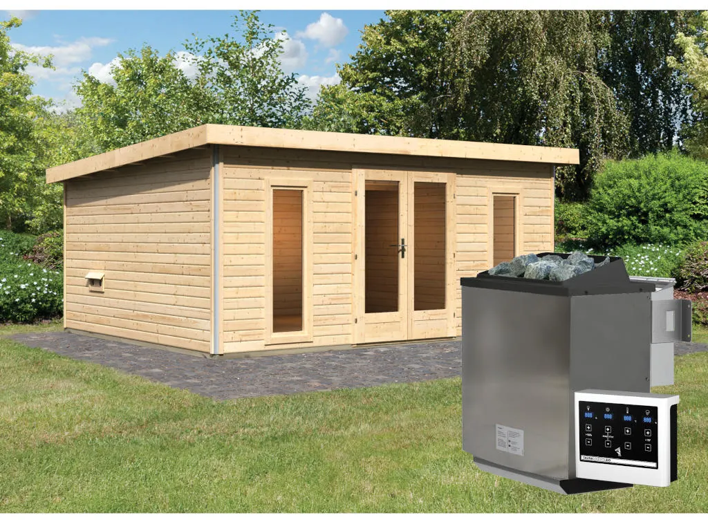 Unsere Wellnessartikel (Saunen, Saunahäuser, Saunafässer, Kotas, Infrarotkabinen, Saunaöfen etc.) dürfen nur für den privathäuslichen Gebrauch verwendet werden! Saunaöfen und dazugehörige Steuerelemente dürfen nur durch einen örtlich zugelassenen Elektroinstallateur mittels festem Anschluss an das Netz angeschlossen werden. Ausnahme: 230 Volt Plug-&-Play-Saunaöfen. Die Mindestsicherheitsabstände vom Ofen zur Wand und vom Ofen zum Ofenschutz müssen unbedingt eingehalten werden. Bei 9-kW-Öfen muss die Höhe des Ofenschutzes angepasst werden. Bitte beachte zu den obig genannten Hinweisen die beigefügten Montageanleitungen.